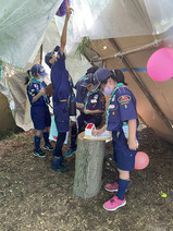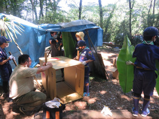 入り口を別で作って、中や外に装飾をして…スカウトたちのこだわりが随所に盛り込まれます。