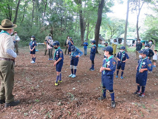 まずはビーバー隊から上進してきたスカウトの入隊式を行ってから組ごとの組集会です。なにしろ新しい組で集まるのは今回がはじめて。まずは組ごとに自己紹介をしました。