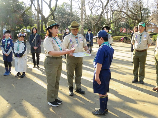 また、この日は新たな仲間が増えました。入隊式を行い、スカウトみんなで歓迎しました。