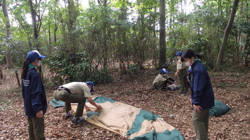 調理道具の片付けが終わったら、サイト点検とテント撤収をしました。