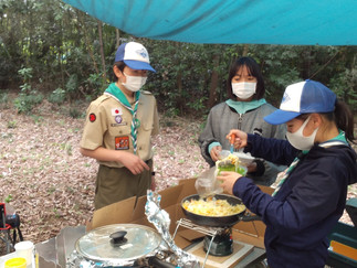 両班とも薪を使って火を起こし、美味しいご飯も炊けました。たか班はカレーを、おおわし班はフライパンだけで作るグラタンに挑戦しました。仲間の協力で飛び切り美味しく出来上がりました。やったね!!